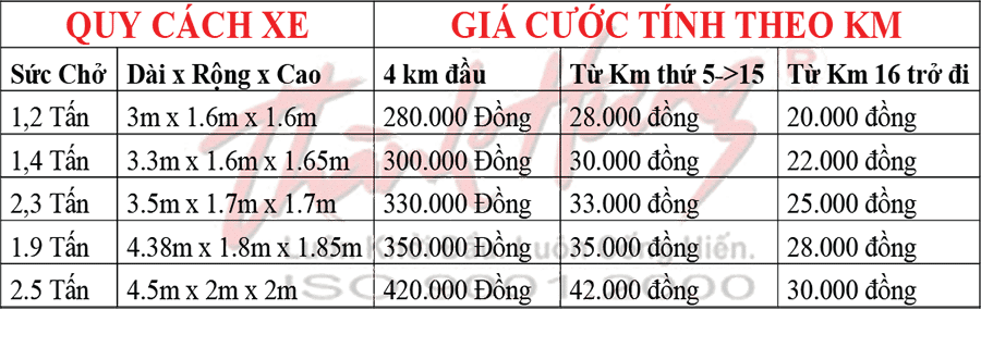 1.Giá cước thuê xe taxi tải chuyển nhà tphcm